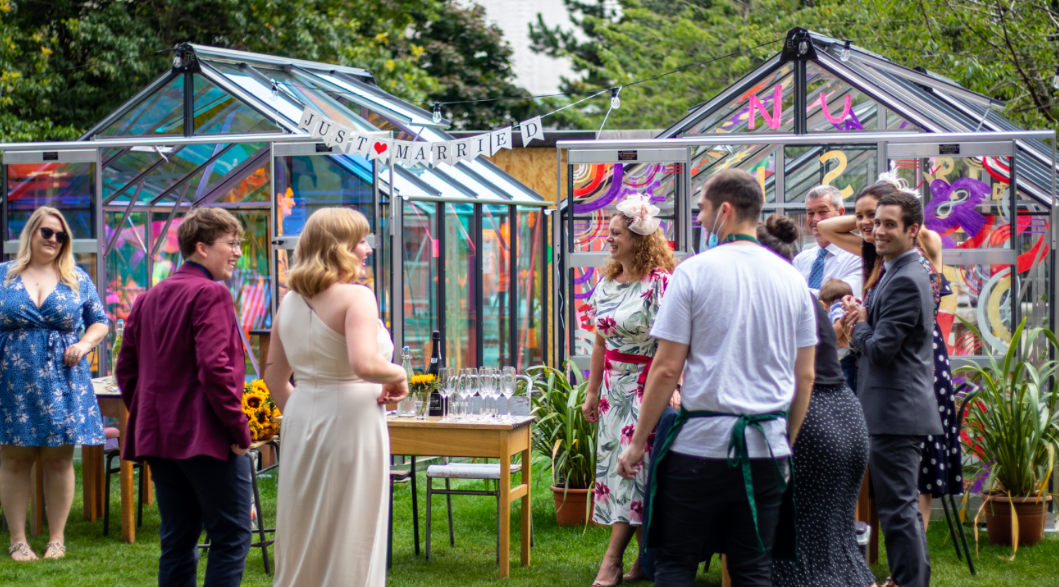 Each art-adorned shed/greenhouse became a dining pod for MediaCityUK’s restaurateurs to safely serve diners within their respective bubbles. BOTD’s summer season ran from July to the end of September, re-opening in early December, featuring a new and extended wave of commissioned artists.