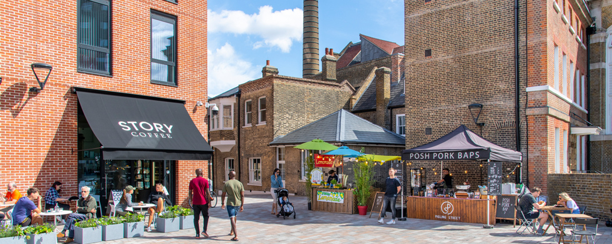 Whilst the original Young’s brewery was a defining feature in Wandsworth for many years, it became an impenetrable barrier that concealed the River Wandle and hindered the growth and regeneration of the town centre. For generations, the eight-acre complex was enclosed by high walls and cut off to the public, corralled by a car-clogged one-way system hostile to pedestrians and preventing any real sense of community.