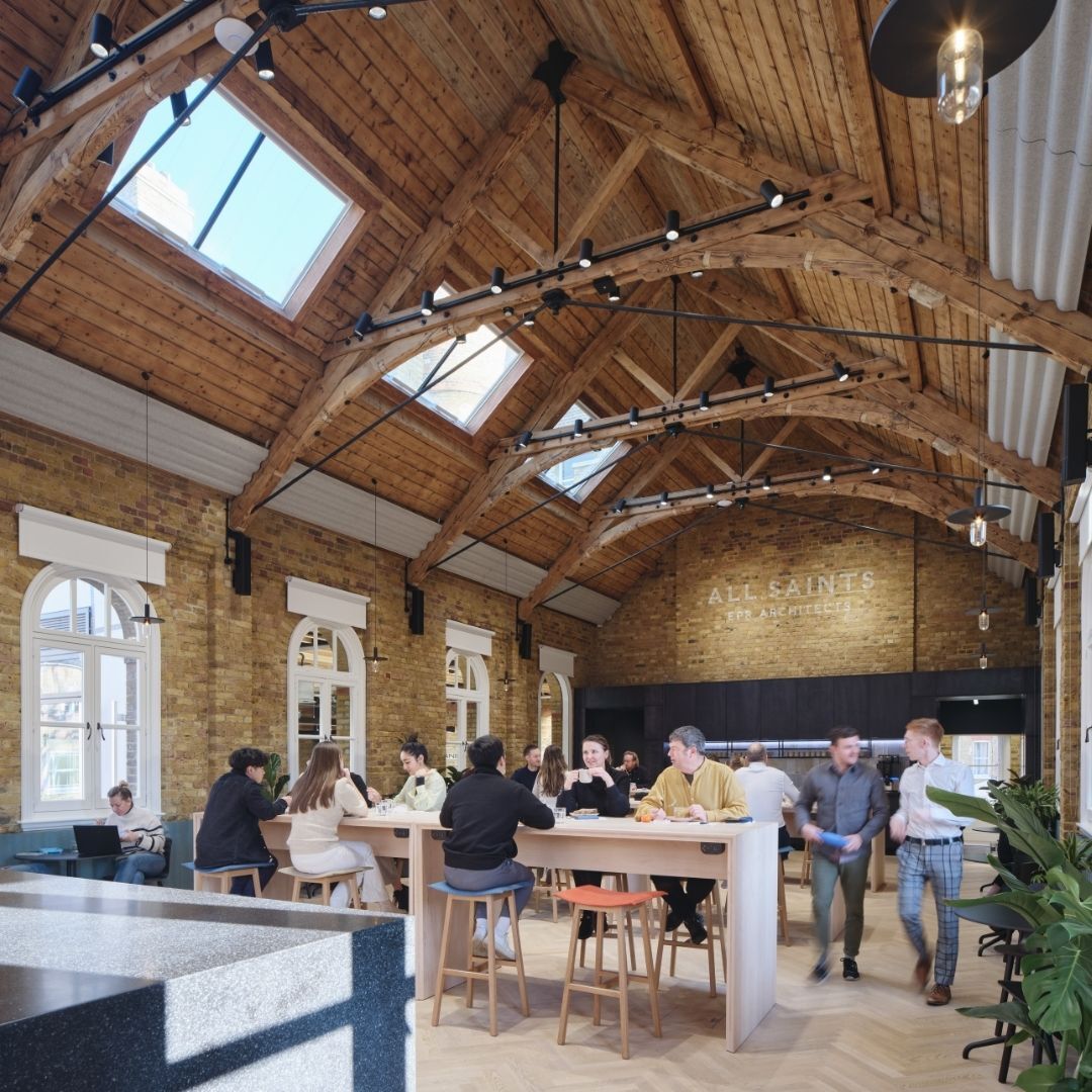 All Saints has a chequered history. Built in the 1870s as an orphanage for girls, it also served as a hospital and as an archive facility for the nearby Imperial War Museum. EPR’s recent repurposing as its London headquarters adds a fourth use, proving the continuing adaptability of the 35,000 sq ft building. In more than 75 years of practice, All Saints is EPR’s first purpose-built home. It was important to the practice that its new headquarters not only provided an exemplary workplace for staff but did so in such a way that communicated EPR’s core values to both staff and clients alike. Despite undergoing numerous unsympathetic alterations, the building’s potential for retrofit was clear. When EPR acquired All Saints in 2017 it boasted impressive floor-to-ceiling heights, large windows and many of the building’s original Victorian features were still intact. Drawing on our extensive heritage expertise, EPR has restored a once fine but crumbling Victorian building to its former glory. The transformation showcases the rich character of the original building while making bold interventions that safeguard its future as a viable workplace. The headquarters’ residential location, combined with the practice’s respectful approach to the site, allows EPR to build strong relationships with the local community of Elephant and Castle. Since moving into All Saints in December 2022, the practice has hosted guided tours, offering local residents an exclusive look into the renovation of the former orphanage and has participated in London’s Open House Festival and the London Festival of Architecture.