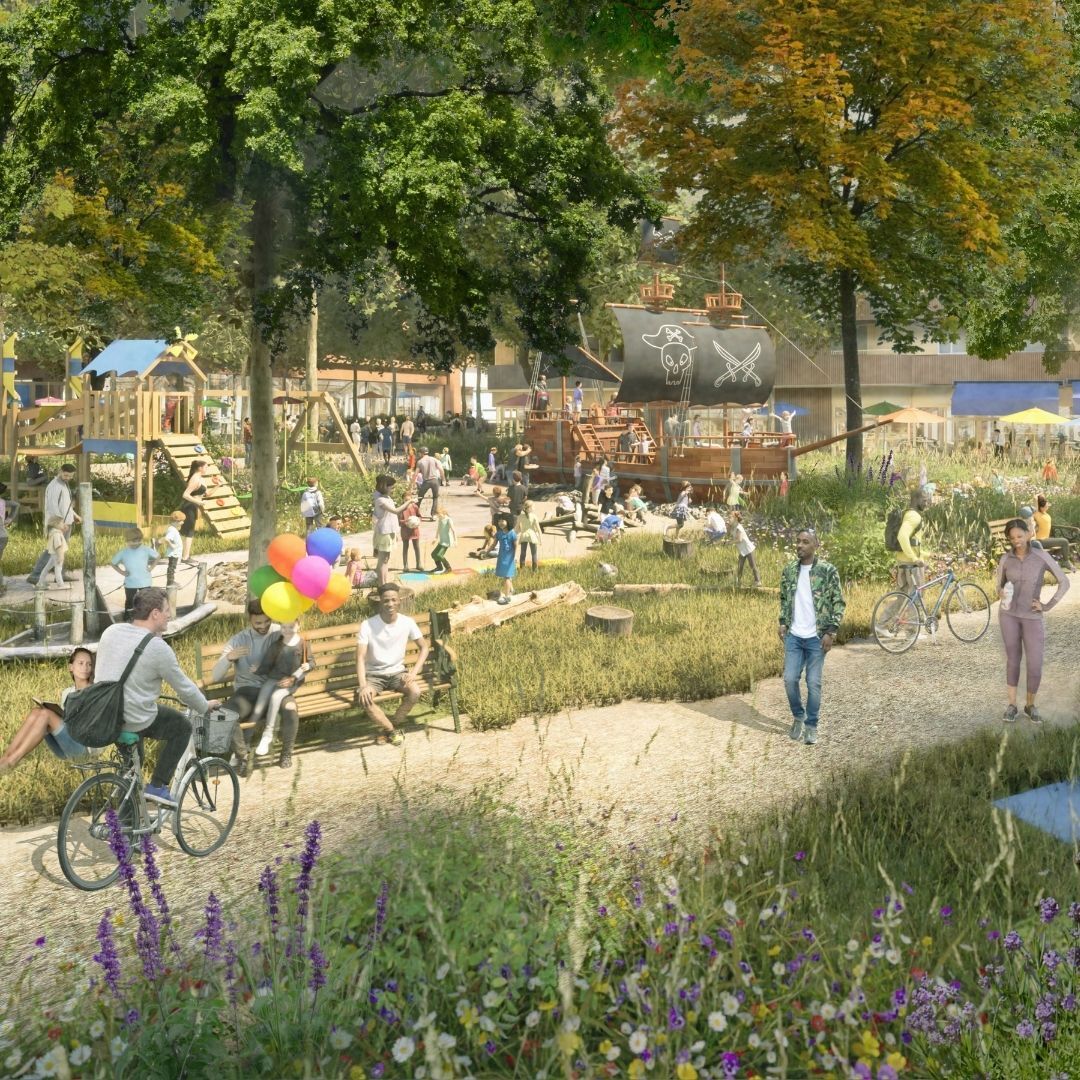 The future place has been designed to deliver: • An inclusive, welcoming neighbourhood in the heart of an existing community • Thousands of homes for all generations • New shops, leisure, and workplaces bringing jobs, growth and opportunity • Two new parks, a new canal basin and canal links • A hub for businesses, charities and community groups • A safe environment for pedestrians / cyclists The site has an island quality, divided by the canal and railway to the north and south. Our vision is to connect the ‘island’ so that it is accessible to neighbouring communities thanks to outstanding transport links, and essential and attractive amenities. Character areas will create vibrancy and diversity: • The Avenue: the traditional ‘high street’ - with wide pavements and cycle lanes • The Canalside Fringe: a park between two residential buildings, with playspace for all ages • The New Wharf: a reinstated basin, the setting for cafes/restaurants • The Southern Terrace: a boulevard providing access to a potential future cycle / pedestrian bridge over the tracks. We have worked with Full of Life, a neighbouring charity supporting children with additional needs, to ensure public realm design is inclusive to disabilities and neurodiversity. Architecture takes inspiration from Regency /Victorian design, as well as Kensal Green Cemetery, the Grand Union Canal and local culture. Height and massing knits the neighbourhood into its surrounding: tall buildings are to the south towards the railways, while buildings lower in height are to the north, towards the cemetery.