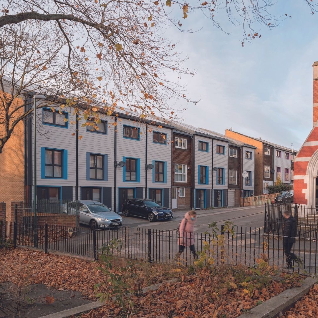 Nottingham City Homes has pioneered Energiesprong revolutionary whole house retrofit in the UK, transforming 136 occupied council properties into desirable, warm and affordable homes, tackling both climate change and fuel poverty. The scheme comprises 1960s non-traditional concrete cross wall homes, including terraces of three-storey houses, low-rise flats, and bungalows. While the homes are well located and have an established community, they were cold and draughty with an inefficient design, particularly the houses with an unheated garage under the living room and an under-croft below the kitchen. Tenure is 100% affordable social rented housing, both before and after the retrofit. The solution was a tenant-focused, highly-efficient whole house retrofit delivering super insulated, low maintenance near ‘net zero operational energy’ homes. The retrofit has also transformed the neighbourhoods with brighter finishes and increased passive surveillance from converted garages and first floor Juliet balconies to some houses. The design team, led by Studio Partington, involved residents in developing the design brief during the competitive tender process. The community came together to establish a ‘wish list’ and choose the colour of their own window surrounds. The solution provider was able to include small items which make a big difference to residents’ lives, such as light tubes making stairs brighter, outside taps for watering, and doorbells. The tenants were able to remain in residence throughout the retrofit of their home and each home was completed in around twelve days..