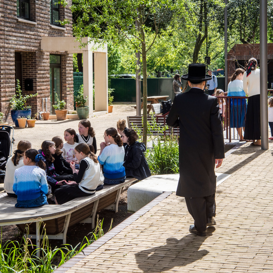 Tower Court sits in a busy, culturally diverse neighbourhood that is home to Europe’s largest Haredi community. A Hackney Council owned scheme that provides 132 high-quality, modern mixed tenure homes for social rent, shared ownership and sale, for this community and others. Tight site constraints and complex social issues were the spur for rigorous site analysis and deep community engagement., which allowed for a set of conversations between and amongst communities that continued throughout the design process. This led to innovate best practice across the design process, landscape and architecture, to develop homes that are highly specific to people and place. In a synthesis of architecture and landscape, buildings flex around retained mature trees and open out onto Clapton Common. The constraint of root protection is used to establish a deep hedge border and make a dignified clarification of public and private territories, which feel open and welcoming. The public realm is intensively shaped as a place of play and social encounter, with a series of nine bespoke play bridges spanning the swales of the sustainable drainage, and extending into the entrance lobbies. The inflected geometry of the buildings improves internal qualities of daylight, views and aspect, but also shapes the courtyards as comfortable, spatially interesting, outdoor rooms. A tenure blind scheme, with each courtyard a mix of tenure type and unit sizes, creates the foundations for an integrated community. It is a model for high density family living, suitable for the changing and diverse needs of contemporary London.